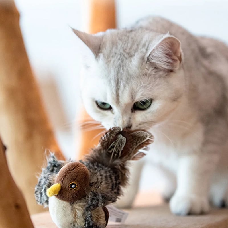 Designed with a realistic bird sound and feather tail, this cat toy will satisfy your cat's natural hunting instinct