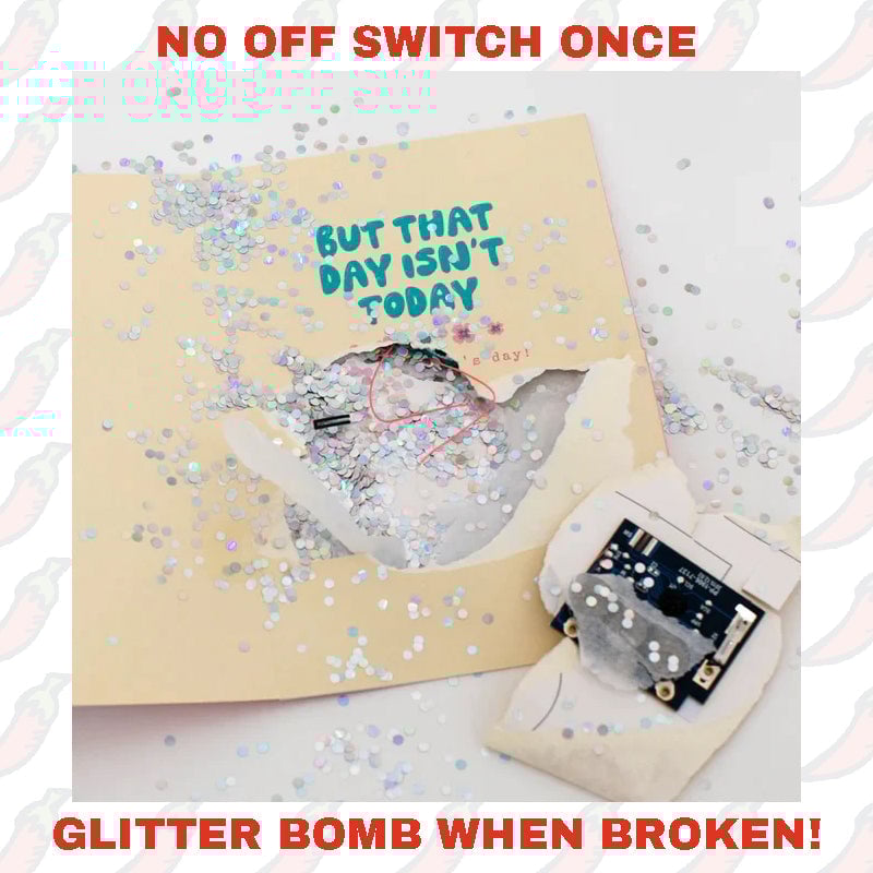 • Step 4 - Let her know the sound will only stop if she breaks it apart and destroys the speaker.  Continue rolling on the floor in laughter as she's covered in glitter!