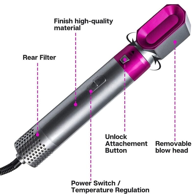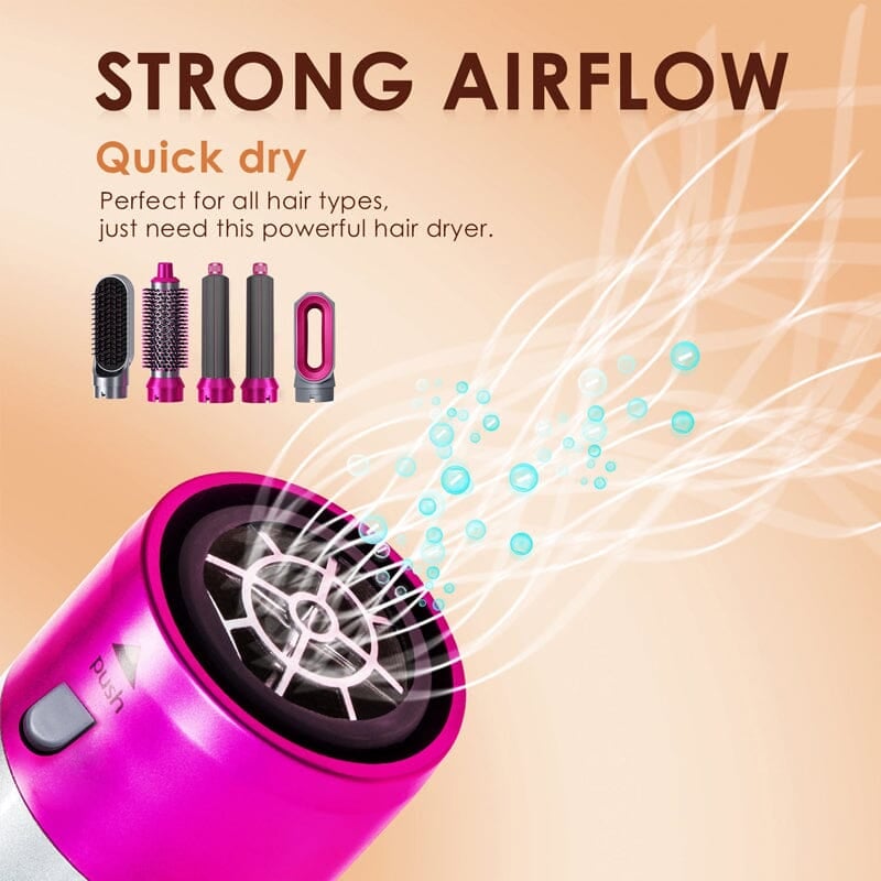 The hair dryer brush contains 5 replaceable brush head attachments, which can easily dry, straighten, curl, and volumize.