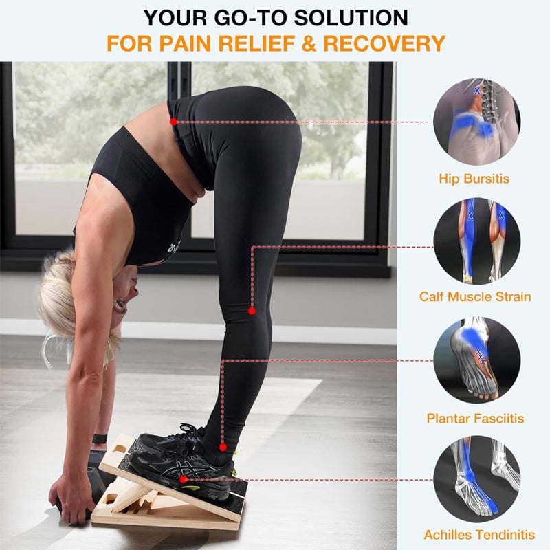 Solid and Sturdy Material: Our 3-in-1 slant, stretch, and balance board is crafted from durable pine wood, designed to provide reliable support for squats, stretching, and balance exercises. Its robust construction ensures long-lasting performance and stability during every workout.