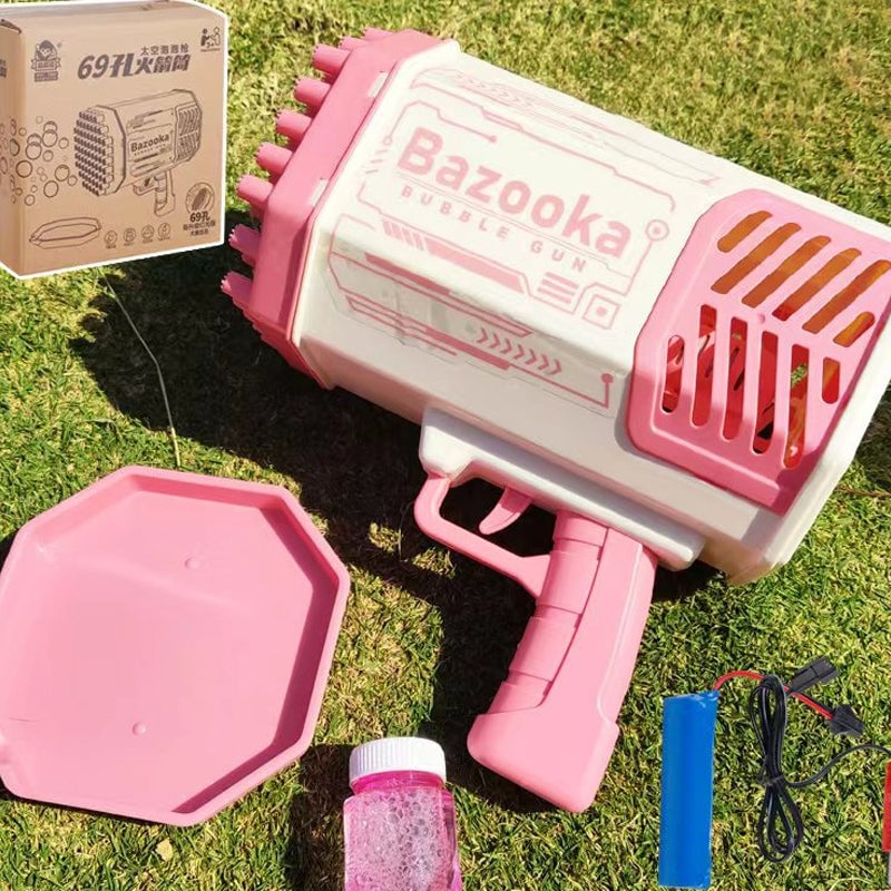 69 HOLES DESIGN: The Bubble Maker has 69 bubble holes and can blow out blows out thousands of bubbles at the same time. The bubble maker has a built-in colored lamp, so you can enjoy colorful scenes at night by pressing the trigger and seeing rich colored bubbles being blown out with fantastic lights rendering colorful bubbles whether it's day or night.