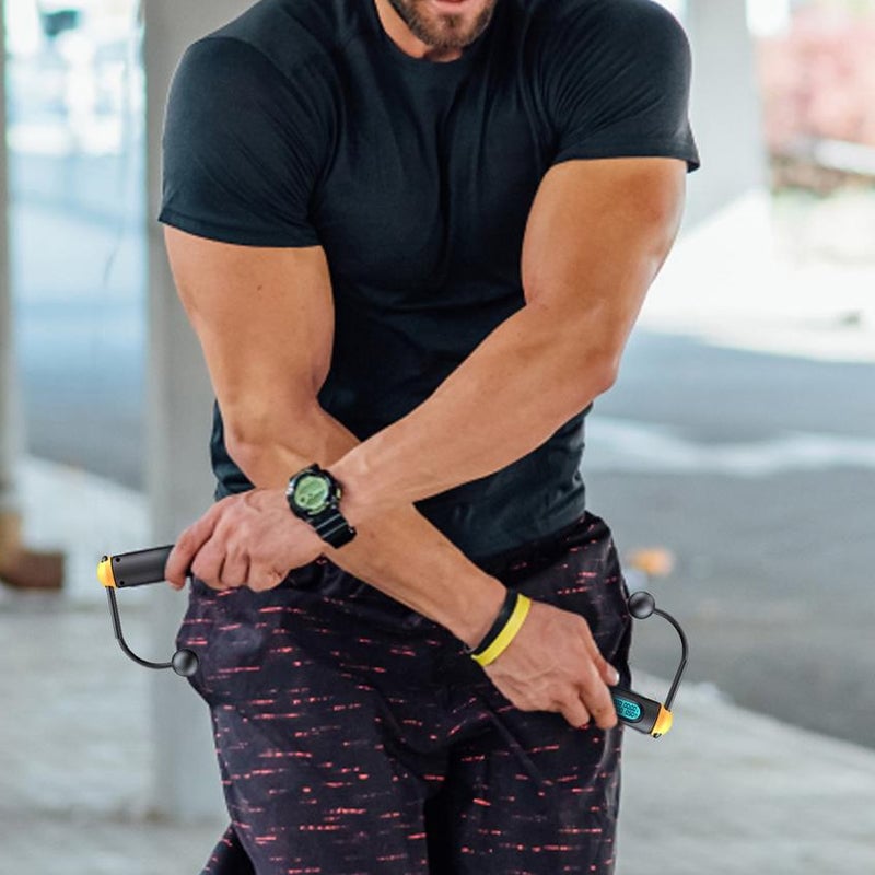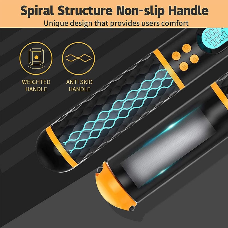 One of the handles is equipped with a backlit LCD screen, the screen shows you the calories burned, jumping times and how long you should train.