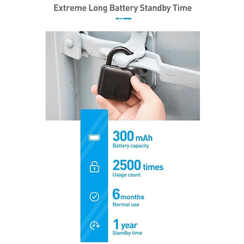 【Security Lock for Locker and Portable】The fingerprint lock is made of zinc alloy,whether the padlock body or shackle.High toughness steel wire,seamless joint is great for anti- thief,anti-dust and anti-erosion.The lock is your best choice to protect your private property from thieves,The fingerprint lock is small and classic, just 90g, 57.7*25.2*88.5mm/2.27*0.99*3.48in
