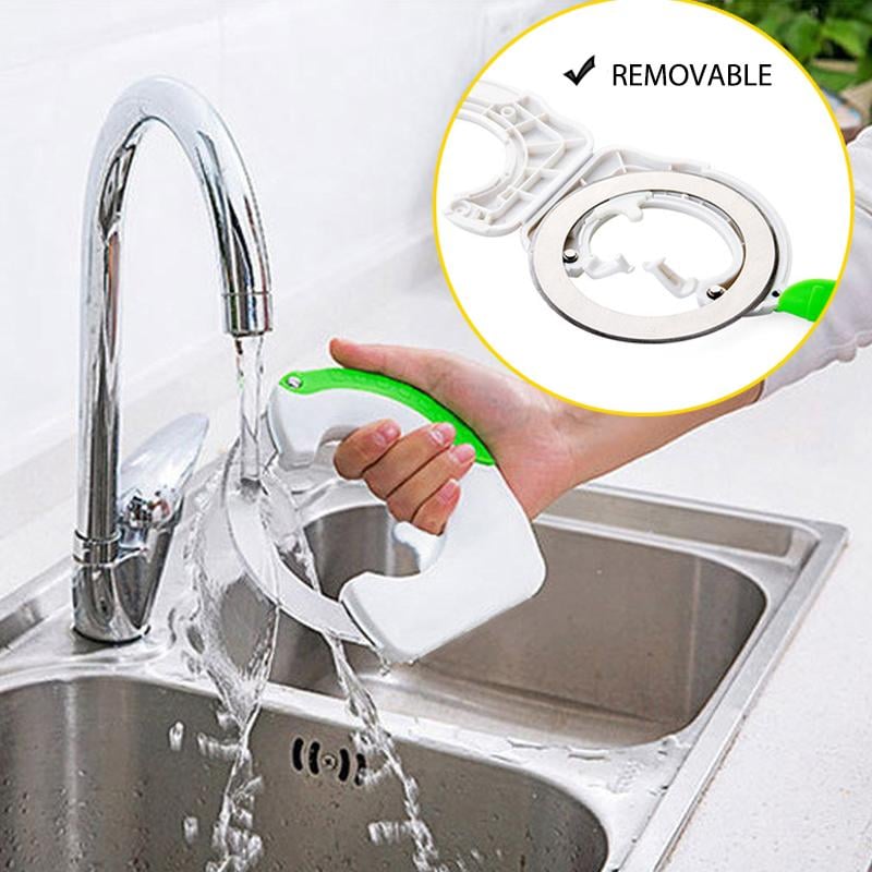 - The knife uses a circular blade that runs along the entire circumference of the handle