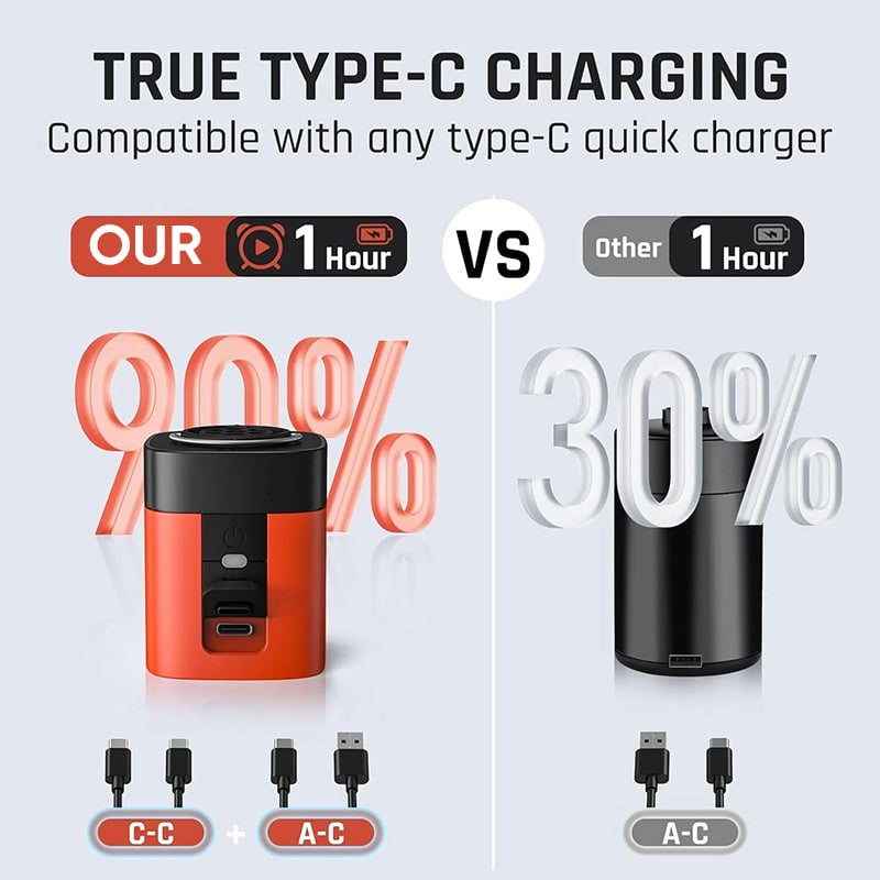 - 2X LARGER BATTERY CAPACITY: With a 2600 mAh Lithium Battery, the Mini Air Pump can inflate up to sixteen sleeping pads or four inflatable swimming pools(58''*13'') on full charge. The Mini Air Pump is also compatible with any type-C quick charger and can be charged much quicker.