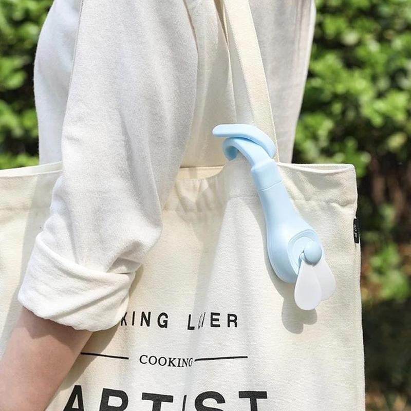 This small fan with upgraded silicone flexible handle design which you can bend any angle you want, grip it, wrap it, hang it, stand it, keep it flexible, and stable. Totally free your hands. -