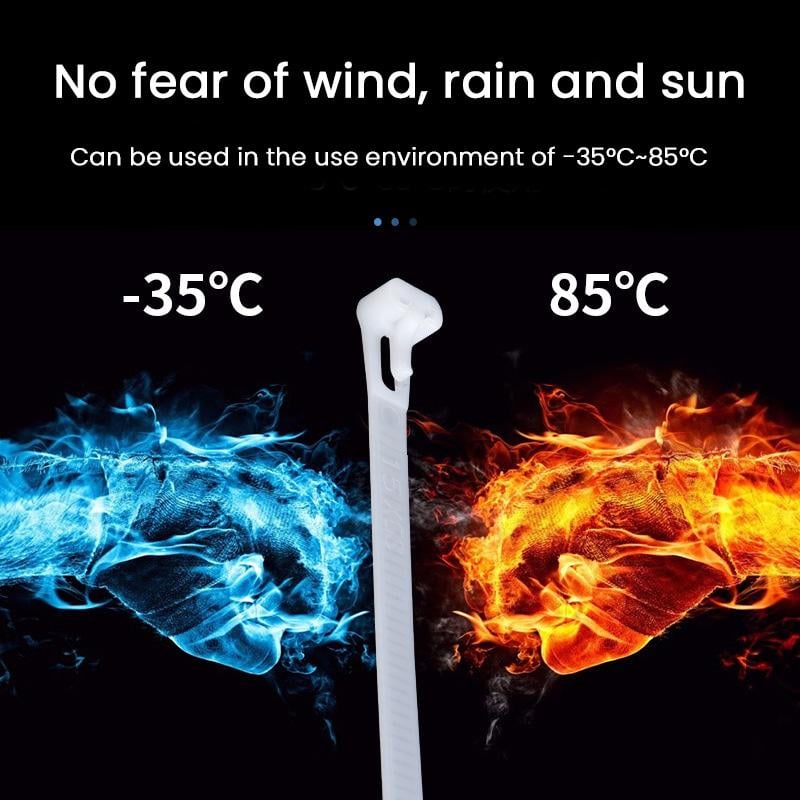 Made of industrial-grade Nylon 66, our Reusable Cable Ties features an easy-release system with a releasable lever, making it removable & adjustable.