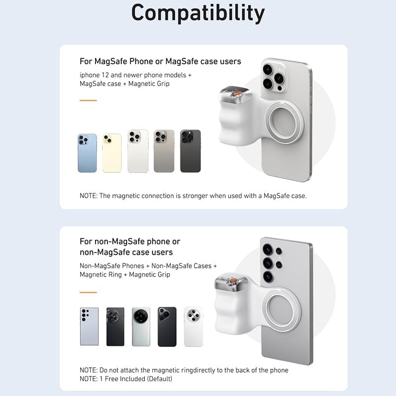 • Double magnetic powerful snap on phone: Equipped with a double strong magnetic mounting design, it can be easily and securely mounted on your phone and can bear a maximum weight of 3KG. It can be used directly with Mag devices or with a Mag-compatible protective case