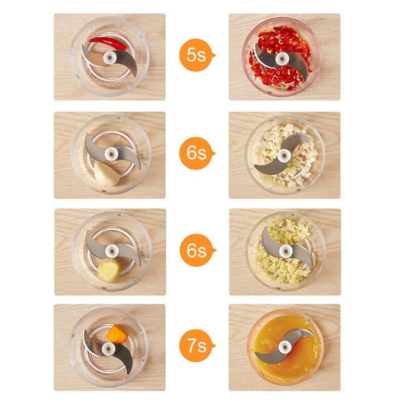 ✿SAVING YOUR TIME - Electric mini food chopper assists you easily chop vegetables, fruits, and meat, crush ice cubes so on with sharp stainless steel blades. Saves prep time for your daily meals and allows you to have more spare time.